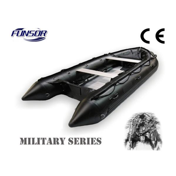 Military series is the toughest inflatable boat that ever exist. We provide them for military and government agencies all over the world to deal with extremely harsh conditions. We construct them with heavy duty South Korea 1.2mm PVC and endure fierce impacts in unexpected tough conditions. The advantages include 1.2mm aluminum floor, NUMEROUS CHAMBERS with quick inflation valves and pressure relief valves for extra safety, high pressure inflatable keel, plenty of molded handles and stainless steel D-rings, all-round grab lines. Ideal for searching and rescuing, safety patrolling, law enforcement, rapid deployment, assault operations and fantastic for diving, fishing, weekend family trips as well.
